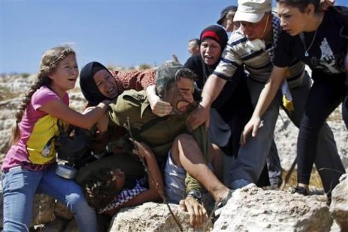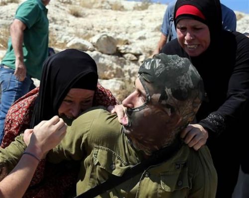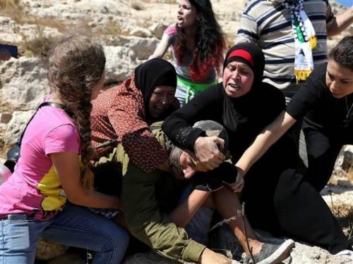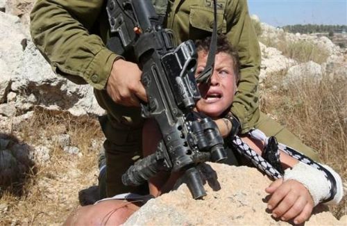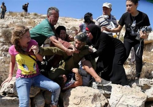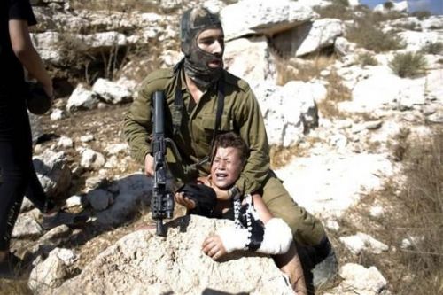 İsrail askerinin kolu sargılı olan Filistinli bir çocuğu gözaltına almak istemesiyle arbede çıktı. Dünya ajanslarının geçtiği bu fotoğraflar büyük tepki topladı. Aile çocuğu askerin elinden kurtardı. Onu kurtaranlar arasında 2012’de İsrail askerine kafa tutmasıyla ünlenen ablası Ahed Tamimi de vardı.