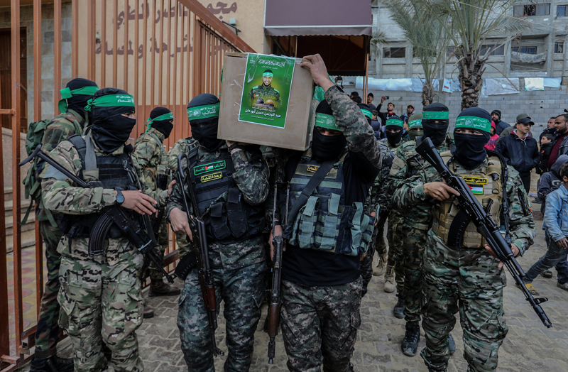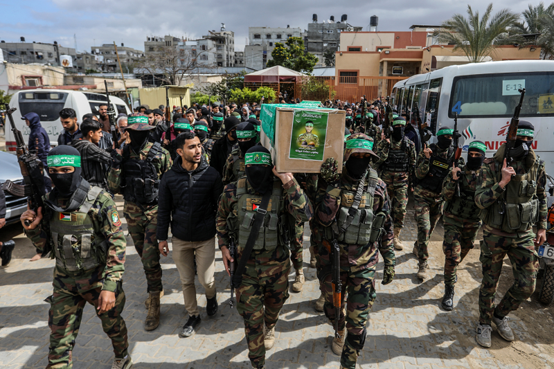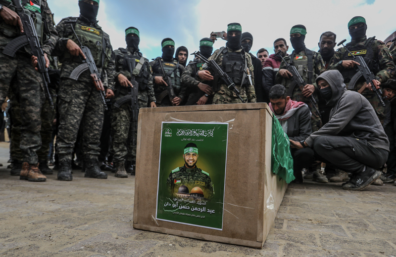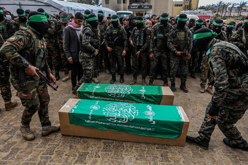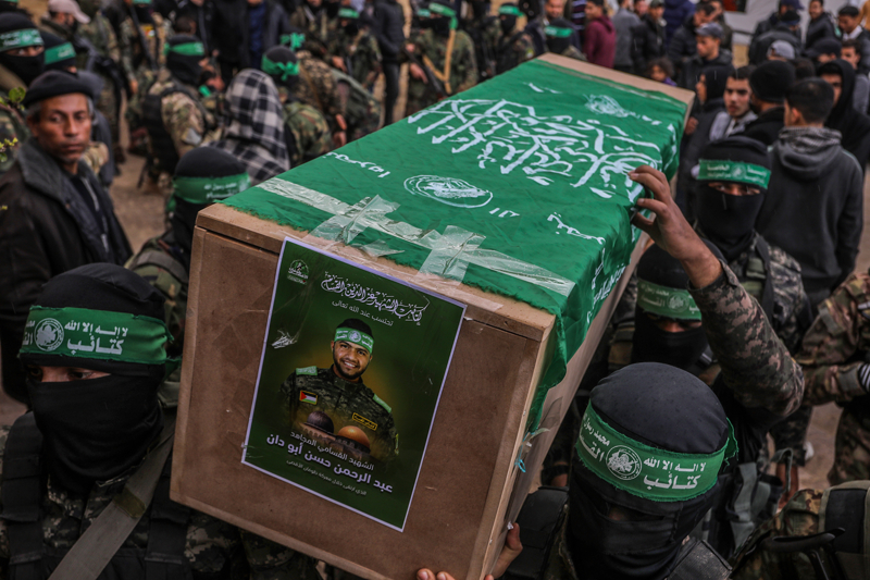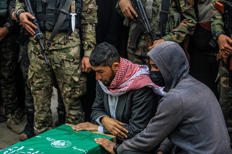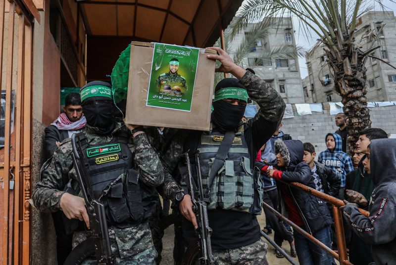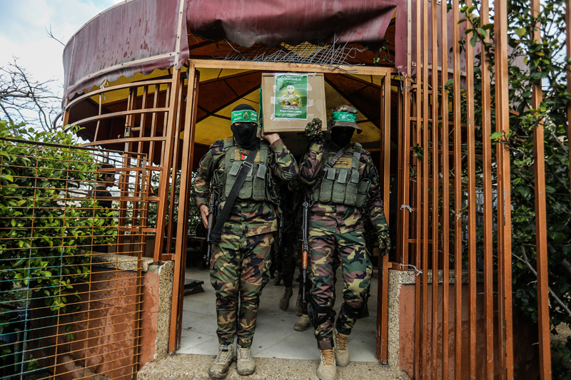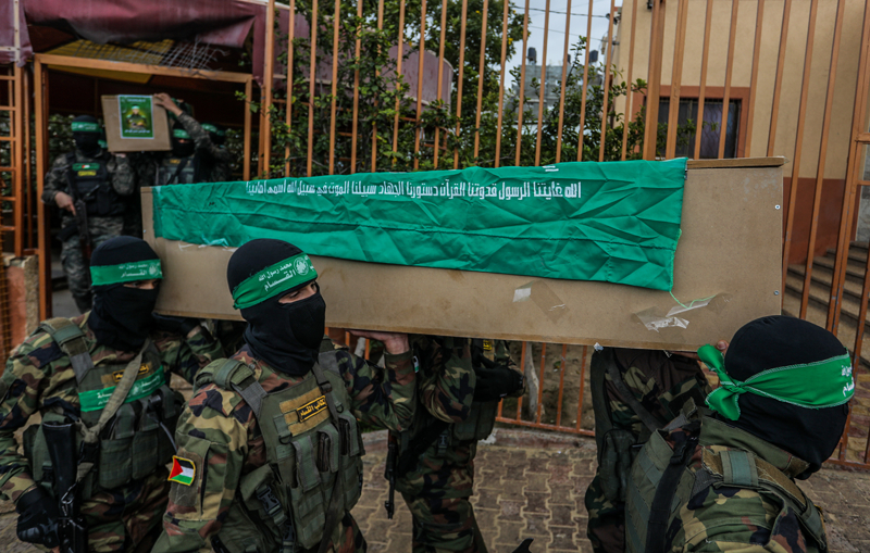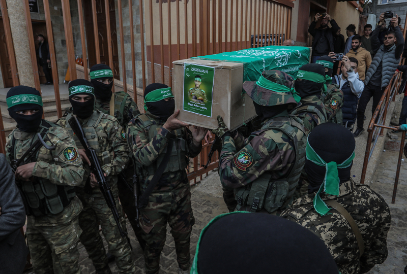 Gazze Şeridi'nin güneyindeki Han Yunus kentinde daha önce İsrail saldırılarında hayatını kaybeden Hamas'ın silahlı kanadı İzzeddin el-Kassam Tugayları üyeleri için cenaze töreni düzenlendi. Cenazede çok sayıda silahlı Kassam Tugayları mensubu yer aldı.