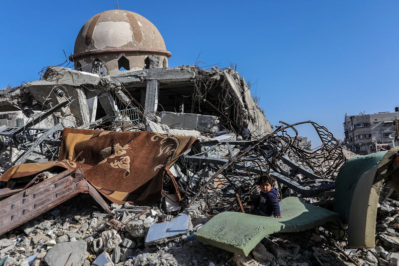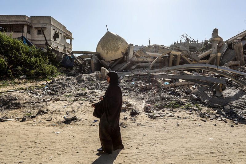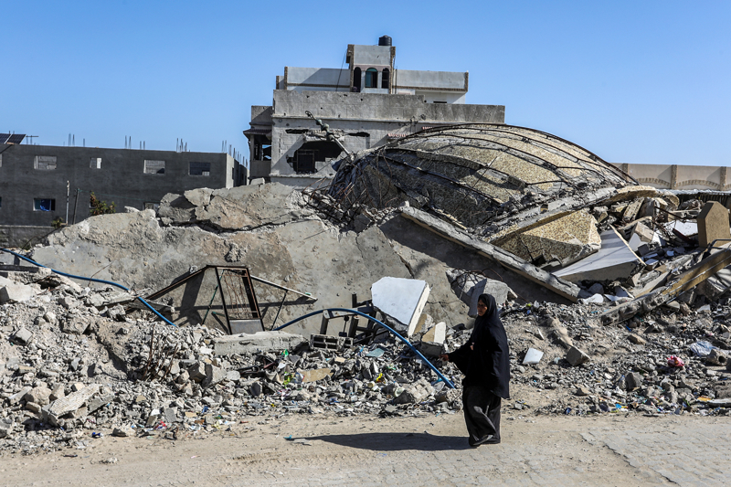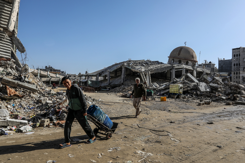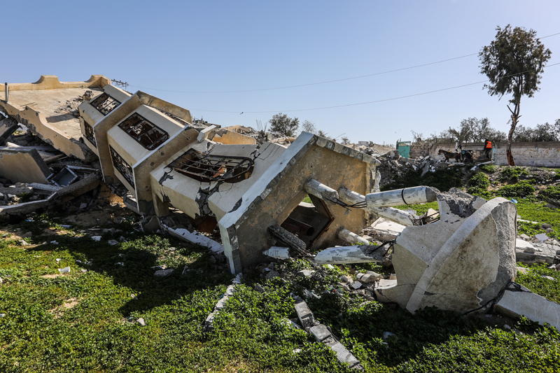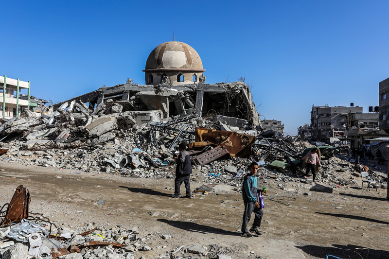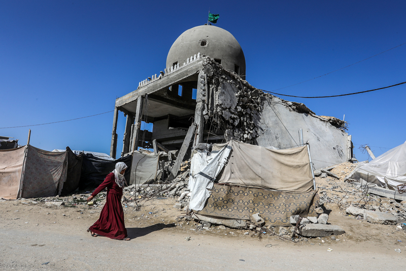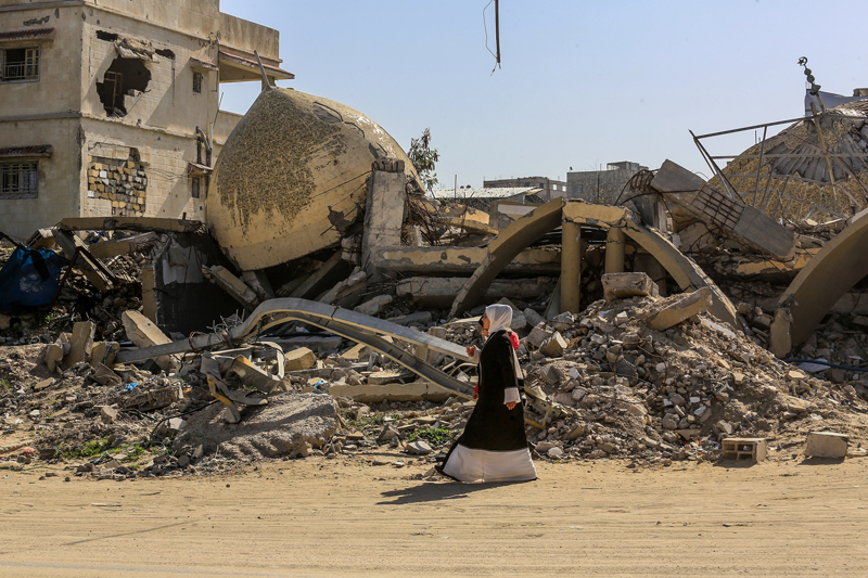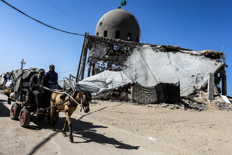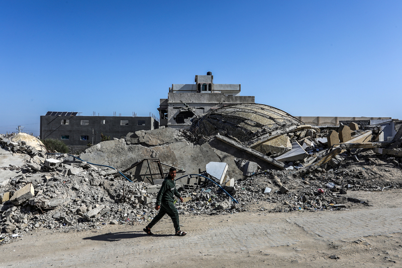İsrail ordusunun çekilmeden önce ağır saldırılarla tahrip ettiği Gazze Şeridi'nin güneyindeki Han Yunus kentinde, yıkılan camilerden geriye enkaz yığınları kaldı. Bölge sakinleri, saldırılarda hasar gören ibadethanelerin kalıntıları arasında günlük yaşamlarını sürdürmeye çalışıyor.
