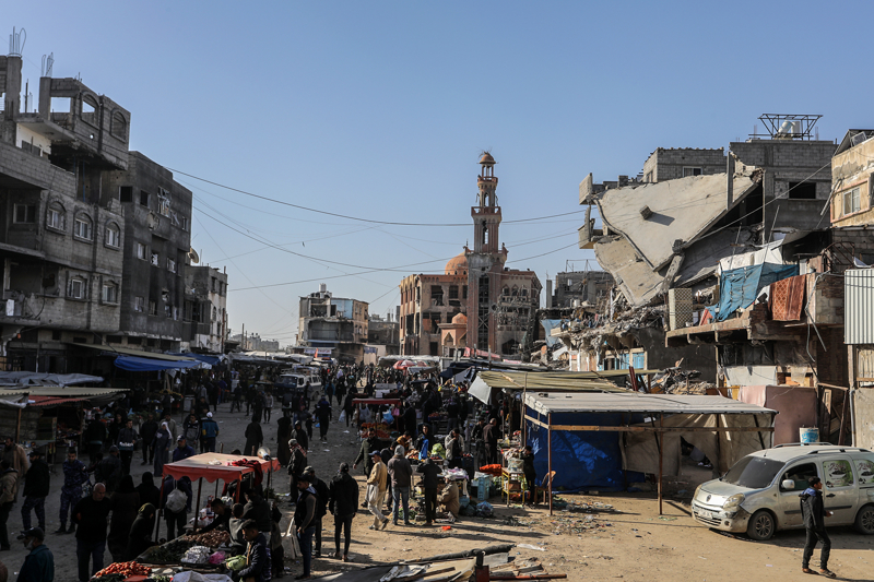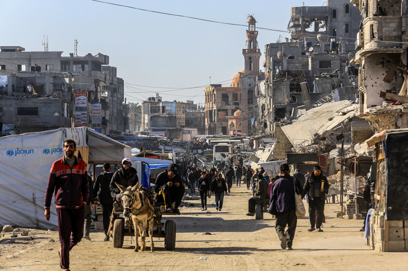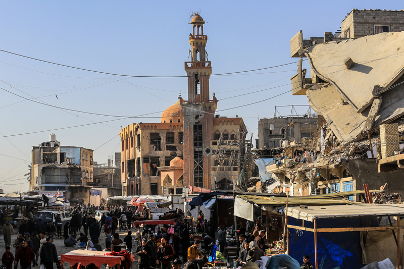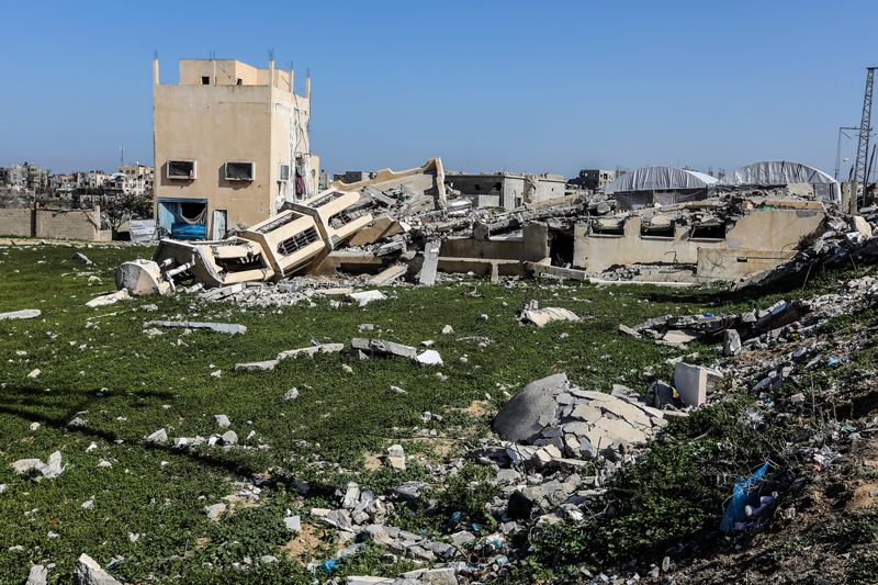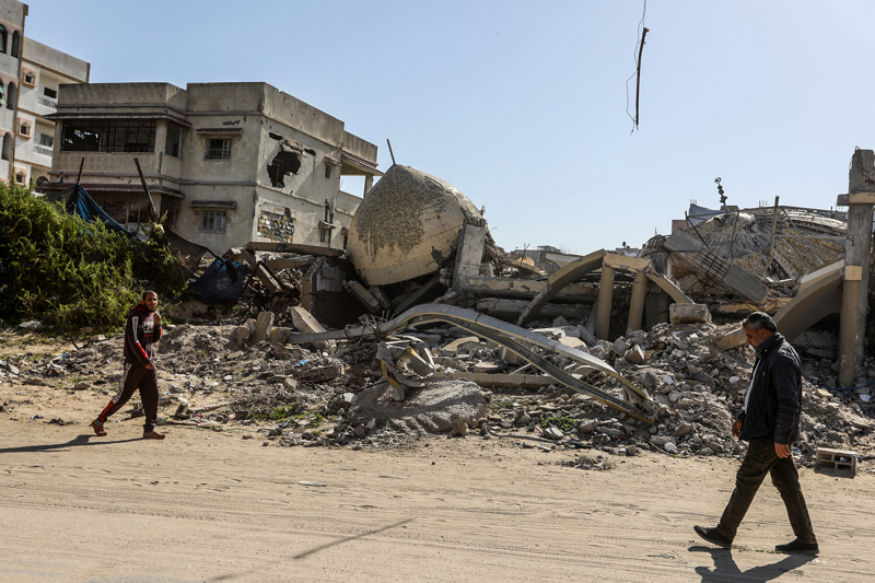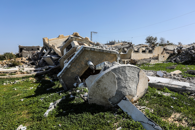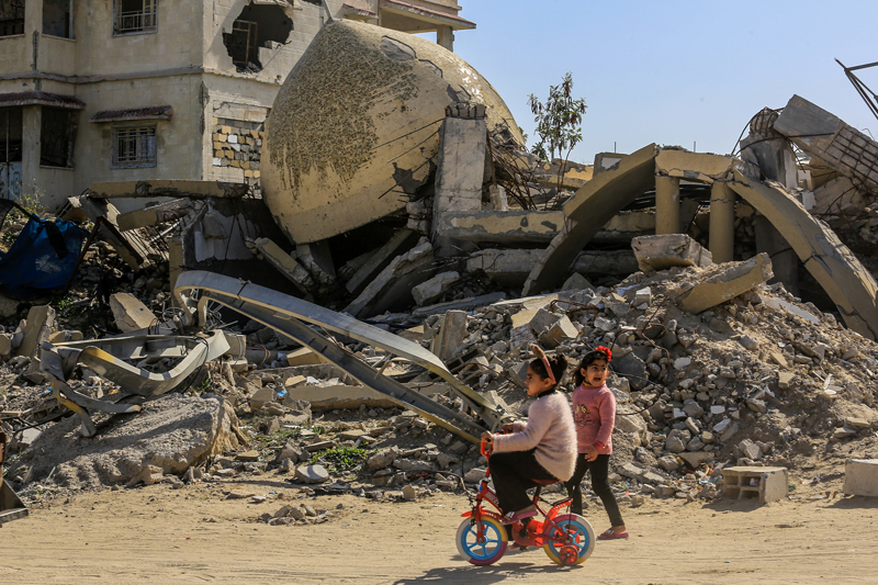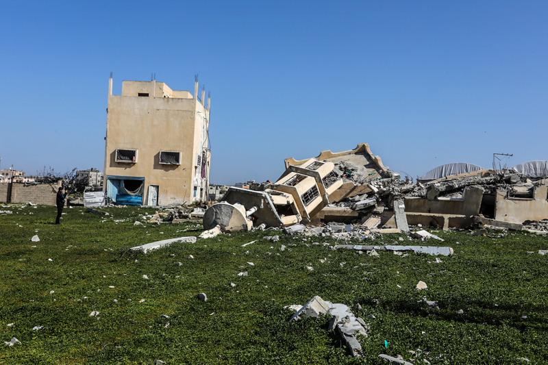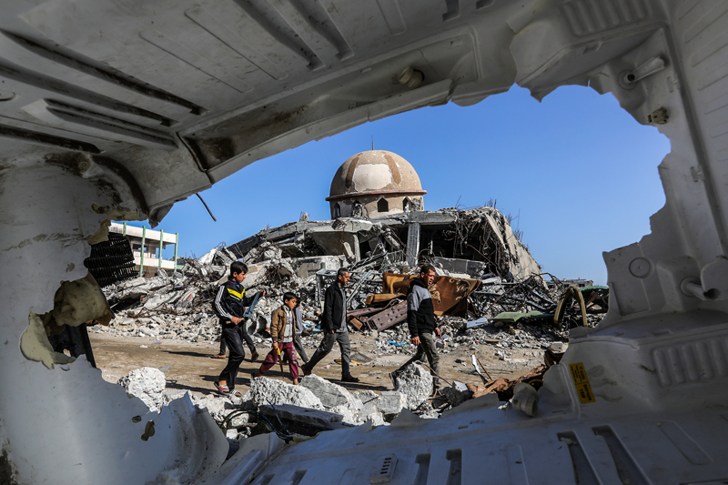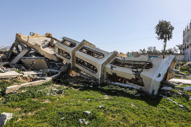 İsrail ordusunun çekilmeden önce ağır saldırılarla tahrip ettiği Gazze Şeridi'nin güneyindeki Han Yunus kentinde, yıkılan camilerden geriye enkaz yığınları kaldı. Bölge sakinleri, saldırılarda hasar gören ibadethanelerin kalıntıları arasında günlük yaşamlarını sürdürmeye çalışıyor.