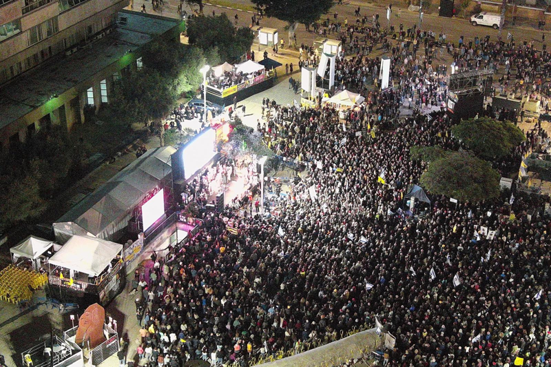 İsrail'in Tel Aviv kentindeki Rehineler Meydanı'nda toplanan binlerce İsrailli, Hamas ile İsrail arasındaki takas sürecinin devam etmesi ve Gazze'deki İsraillilerin geri getirilmesi talebiyle gösteri düzenledi.