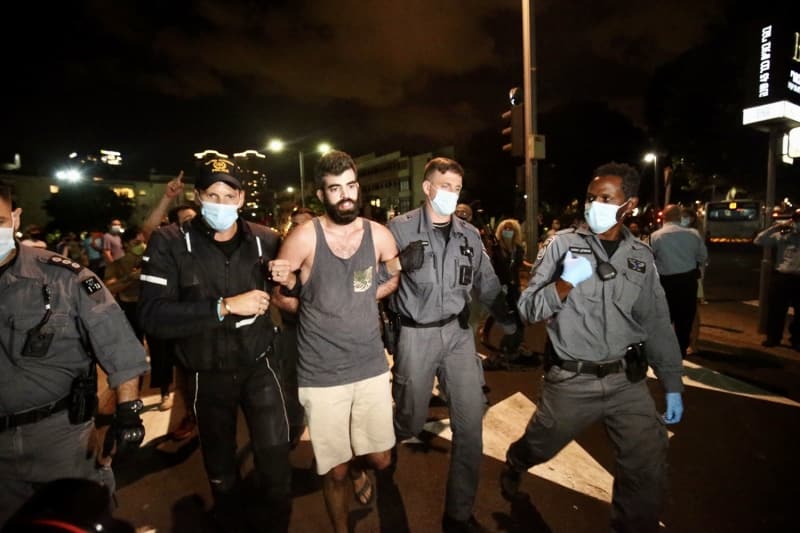 Gösterilere müdahale eden İsrail polisinin, Tel Aviv ve Kfar Saba kentlerinde 13 eylemciyi gözaltına aldığı ve bir kadın göstericiye karşı sertlik uyguladığı aktarıldı.
