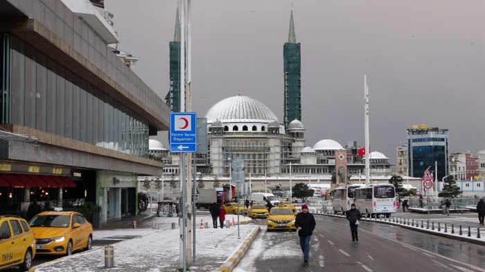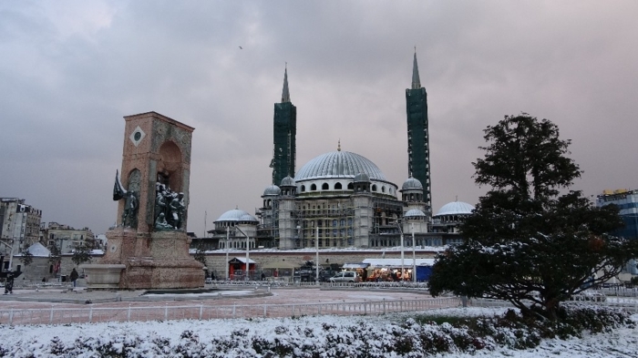 İstanbul’da etkisini sürdüren kar şehrin bir çok alanı gibi Taksim Meydan’ını da beyaza bürüdü.