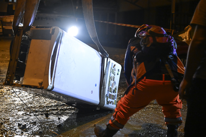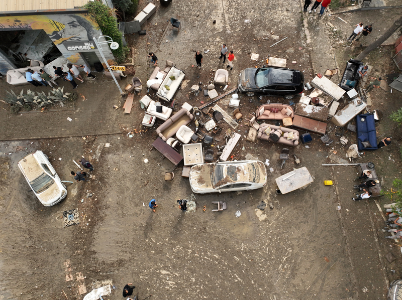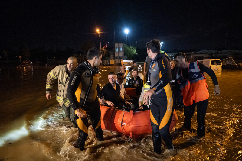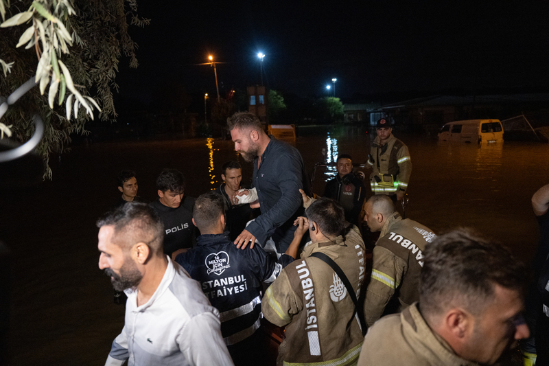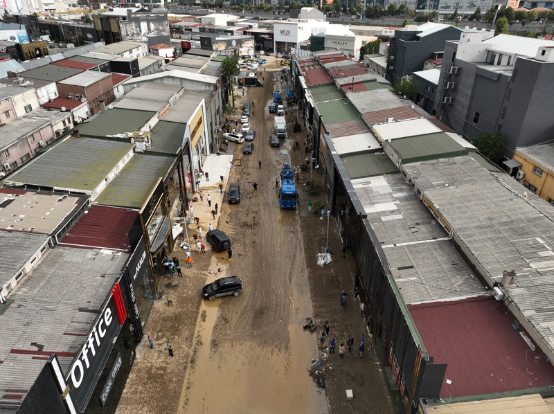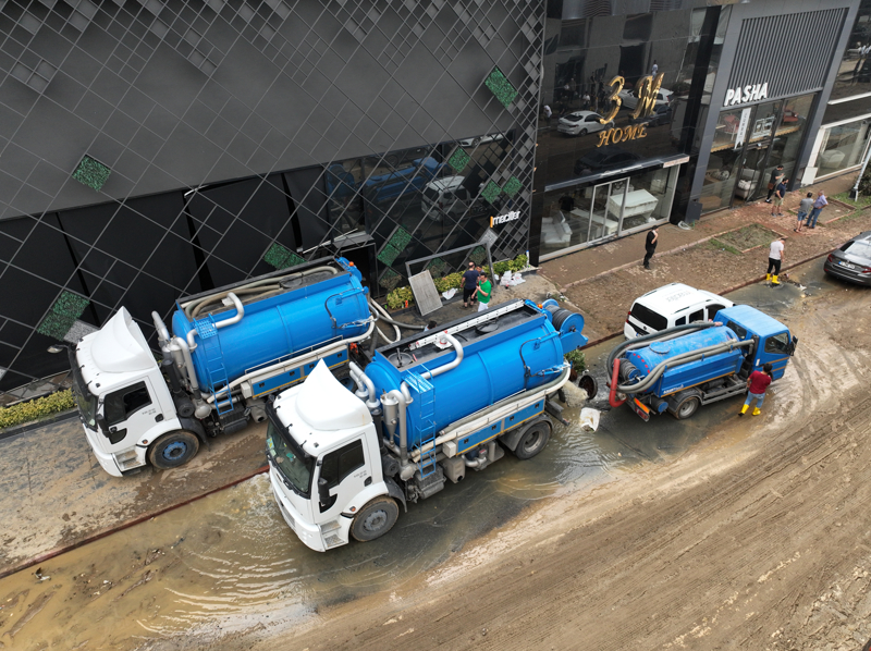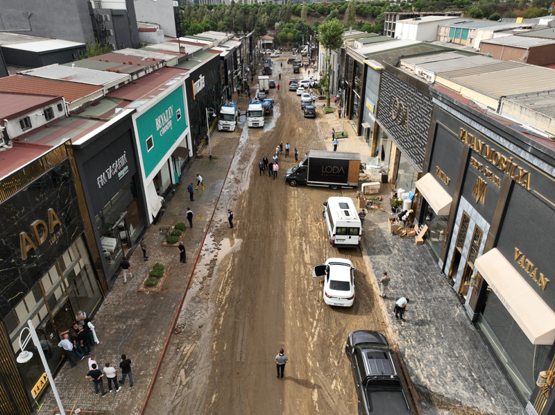 İş makineleri sel nedeniyle meydana gelen dere yatağındaki enkazı kaldırmaya başlarken, dere kenarındaki bazı binalar da tahliye edildi.