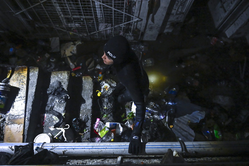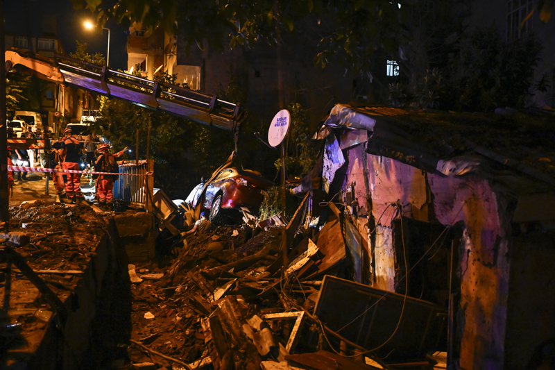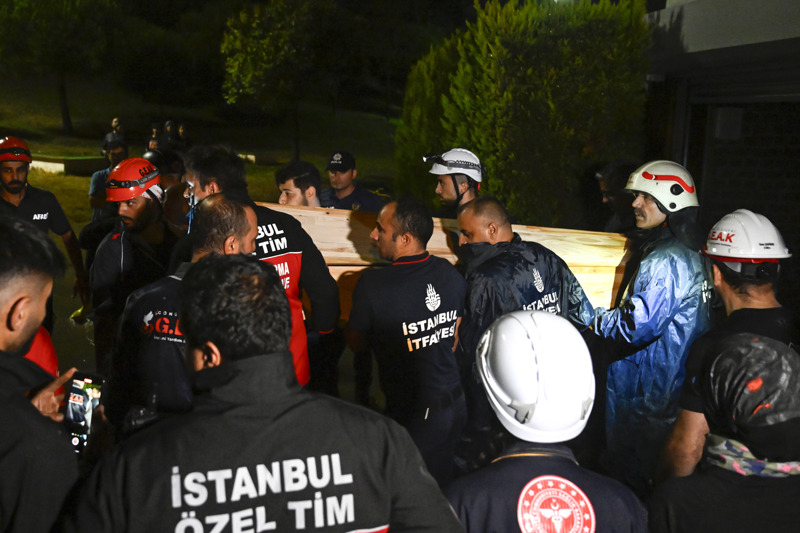 Küçükçekmece'de dere kenarındaki 6 katlı binanın altındaki bodrumunu su bastı.