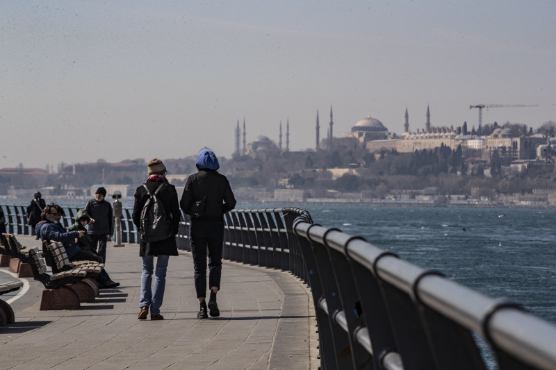Türkiye'nin en kalabalık kenti İstanbul, Kovid-19 önlemleri nedeniyle hafta sonuna kısmen sakin girdi. Kentin ana arterlerinde trafik yoğunluğu azalırken, cadde ve sokaklarda çok yoğun olmasa da hareketlilik yaşandı. Hareketliliğin daha çok yaşandığı sahillerde ve parklarda mangal yakılması yasağına uyuldu.