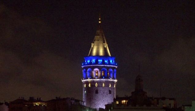 136 ülke tarafından desteklenen "Mavi Işık Yak" kampanyası nedeniyle 15 Temmuz Şehitler Köprüsü ve Galata Kulesi başta olmak üzere İstanbul’un tarihi ve önemli noktaları mavi renkte ışıklandırıldığı görüldü.