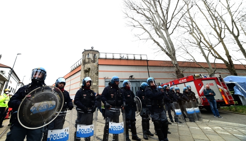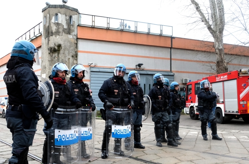 Milan kentindeki San Vittore cezaevi önünde polis, güvenlik önlemi aldı.