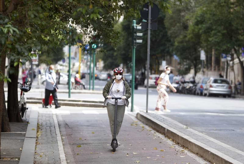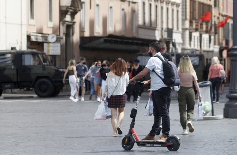 Başkent Roma'da cadde ve meydanların hareketlendiği görülürken belediyeler salgını azaltmaya yönelik toplu ulaşıma alternatif olarak elektrikli scooter'ların da kullanımını da teşvik etmeye çalışıyor.