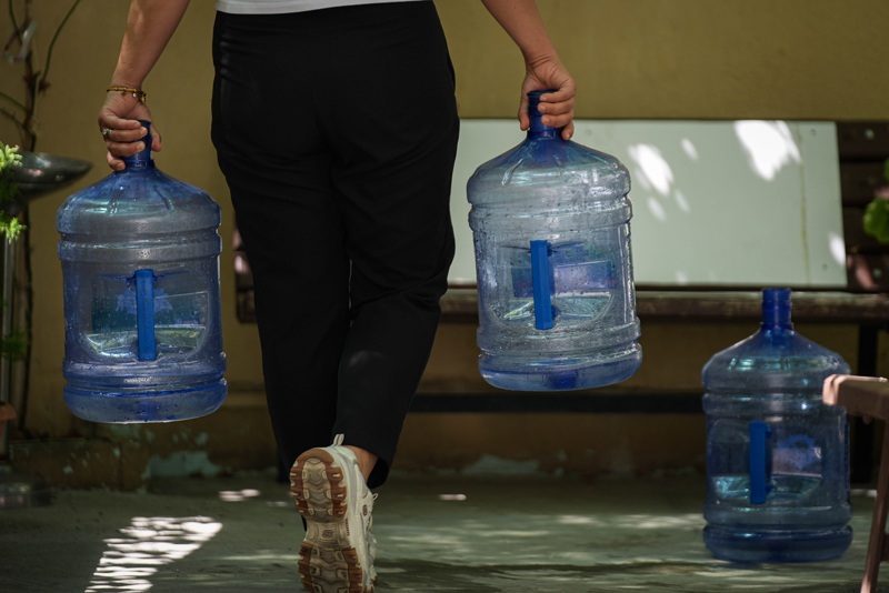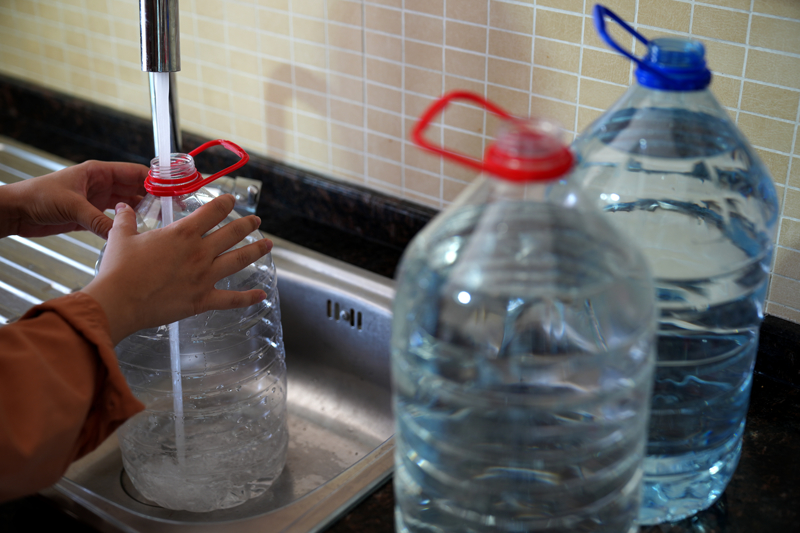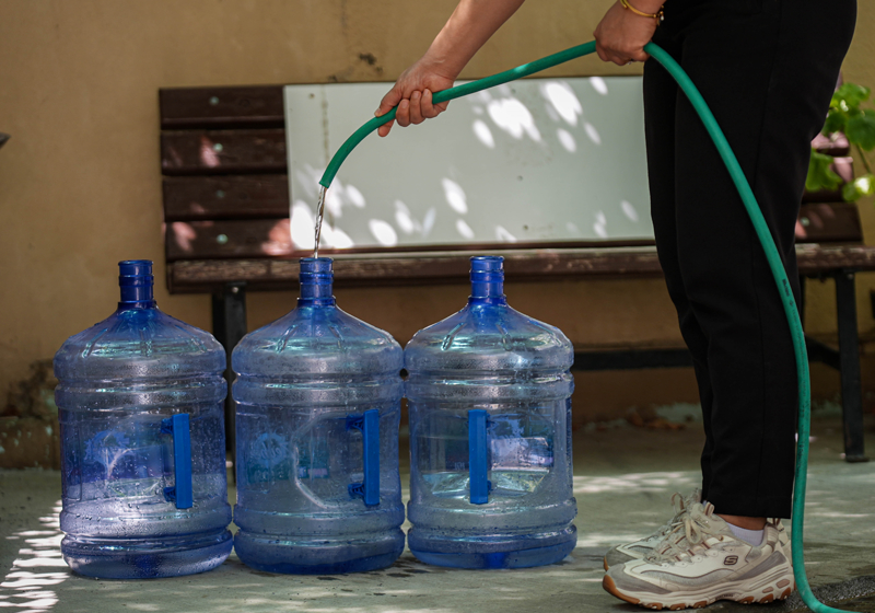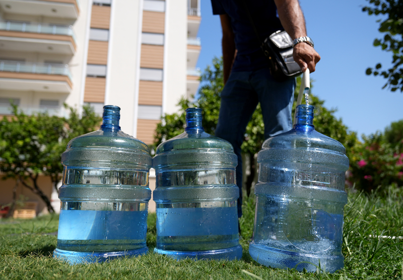 Kentteki vatandaşlar, damacanalara su doldurarak kesintilere karşı önlem almaya çalışıyor.