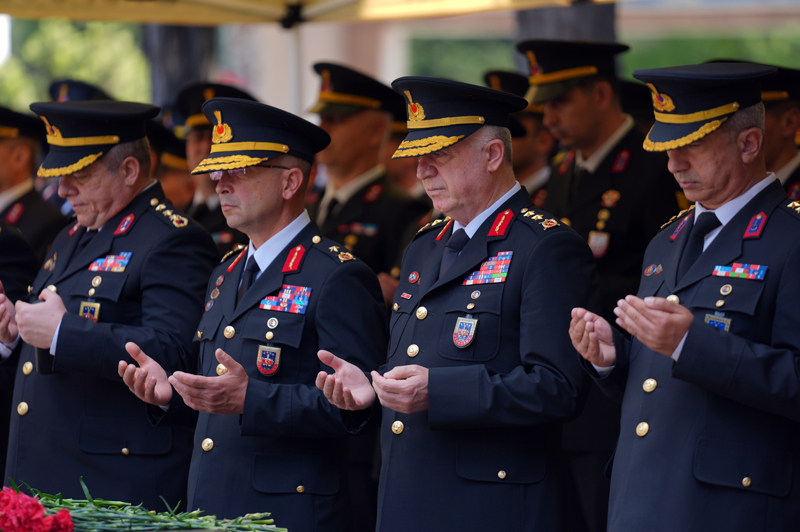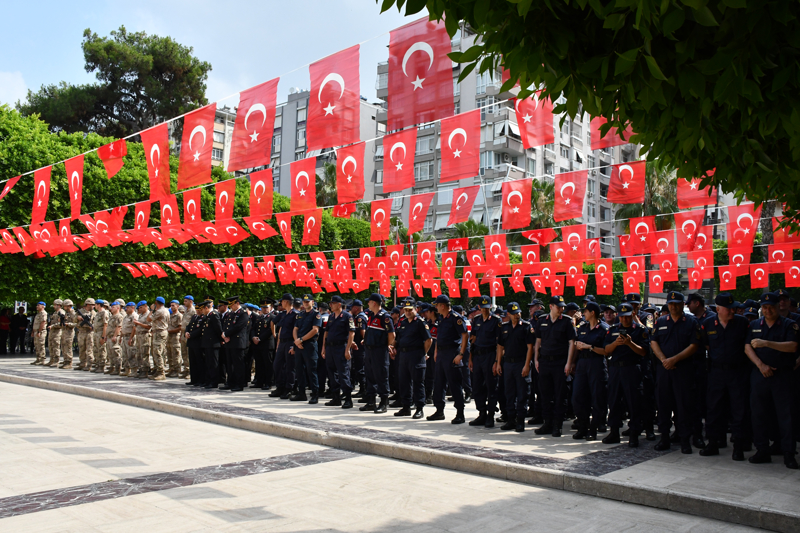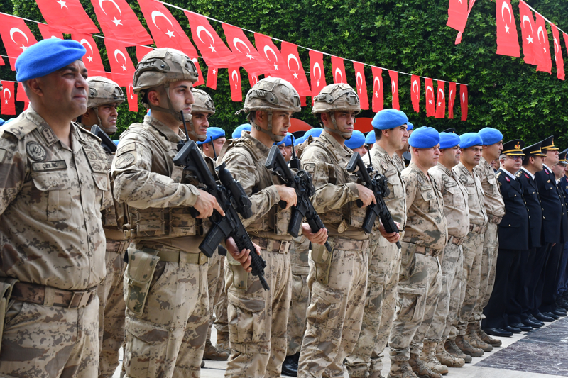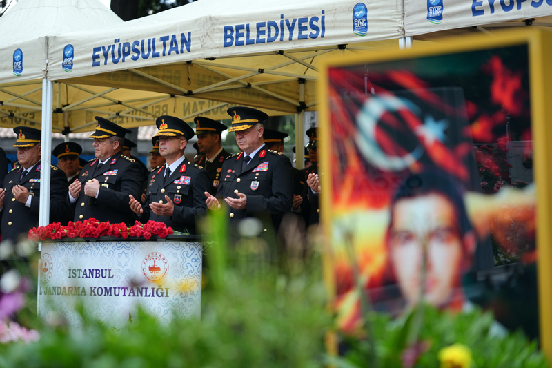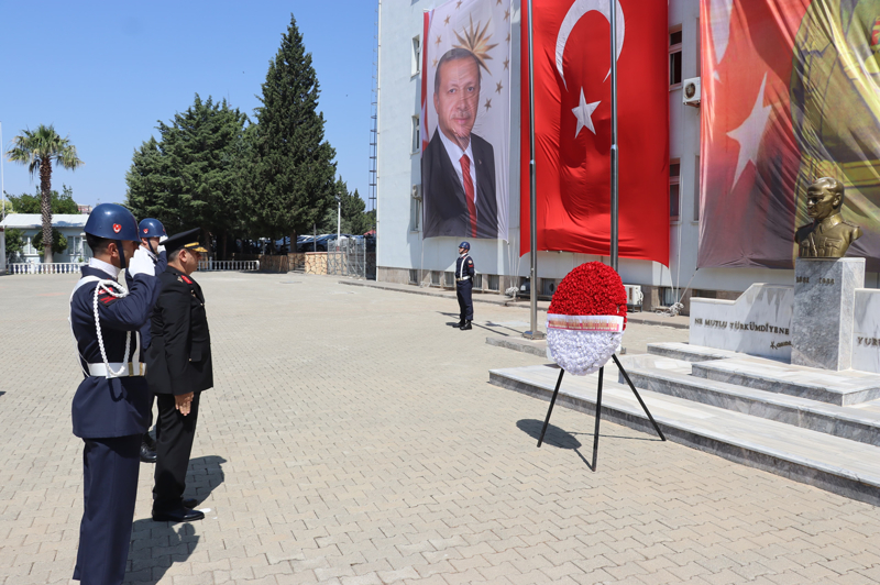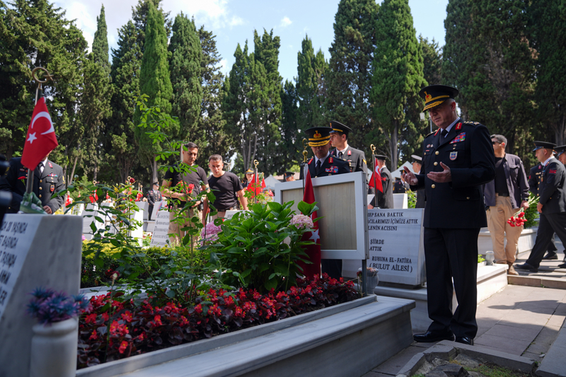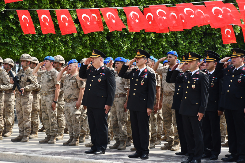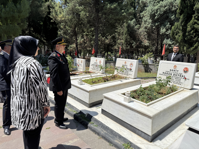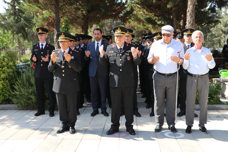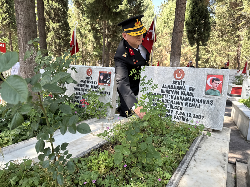 Kahramanmaraş Şehitliği'nde düzenlenen törende, İl Jandarma Komutanı Tuğgeneral Ali Gemalmaz tarafından şehit kabirlerine karanfil bırakıldı.
