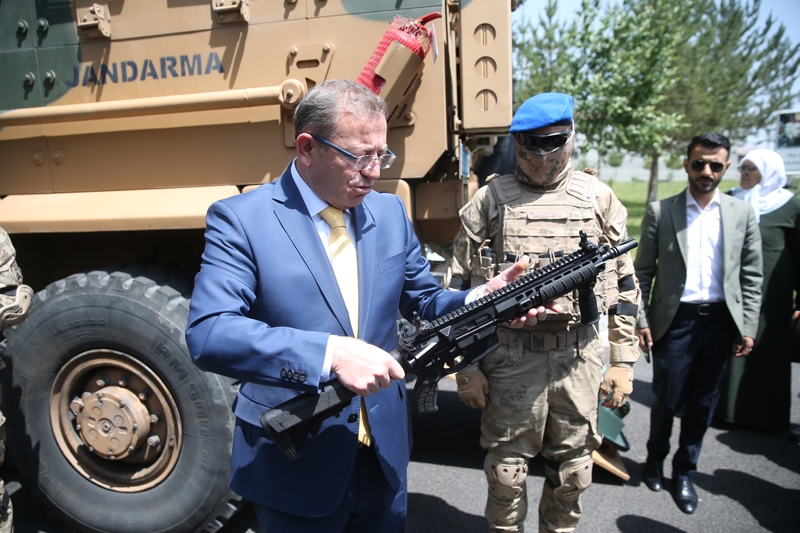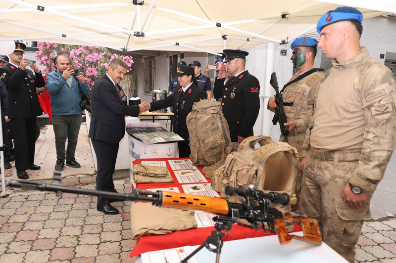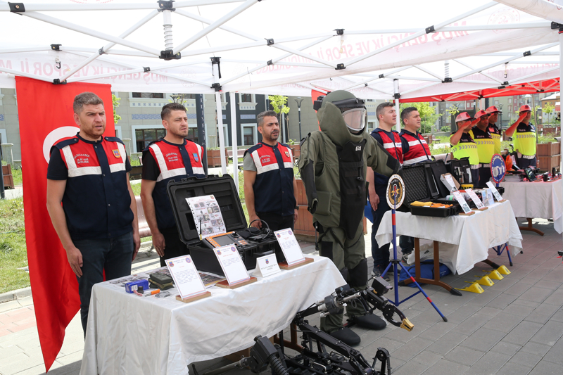 Jandarma ekipleri, Jandarma Özel Hareket Tabur Komutanlığı personellerinin kullandıkları malzemeleri katılımcılara anlattı.