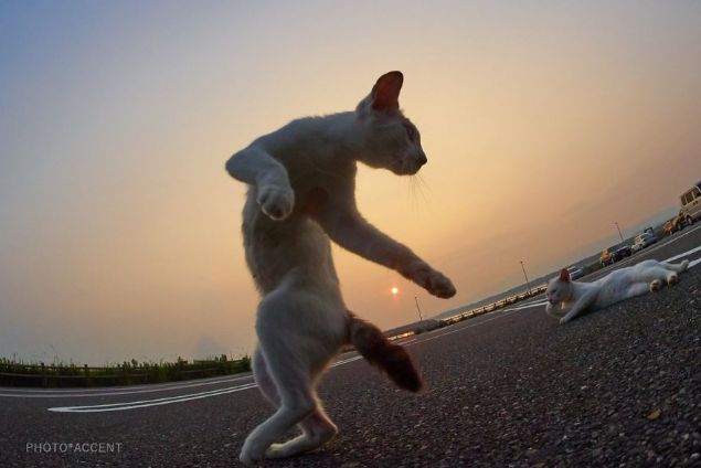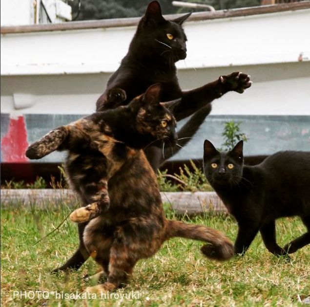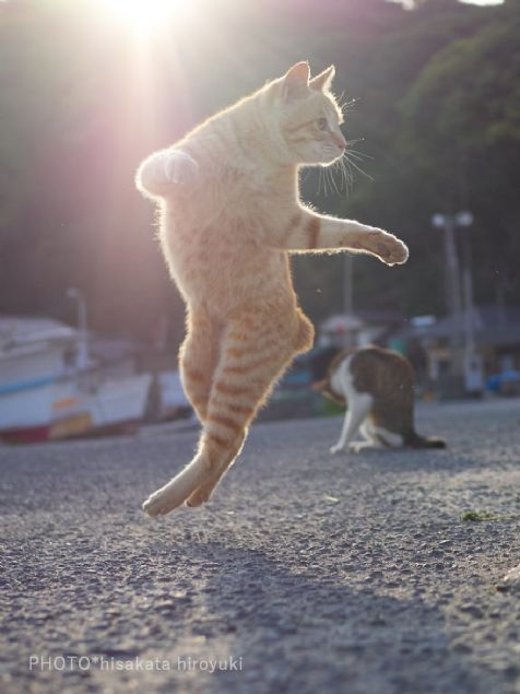 Japon fotoğrafçı Hisakata Hiroyuki, çektiği kedi fotoğraflarıyla kendine hayran bıraktı. Her bir karesi sanki Japon dövüş sanatları ustaları gibi poz veriyor. Kedilerin korunma refleksi ortaya inanılmaz görüntüler çıkarı. Hiroyuki, kedilerin bu refleksini yakalamak için yanında taşıdığı harekeli bir oyuncak ile bu fotoğraf karelerini kaydediyor. İşte o inanılmaz karelerden bazıları...