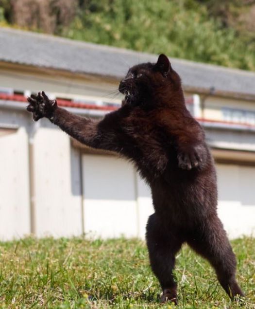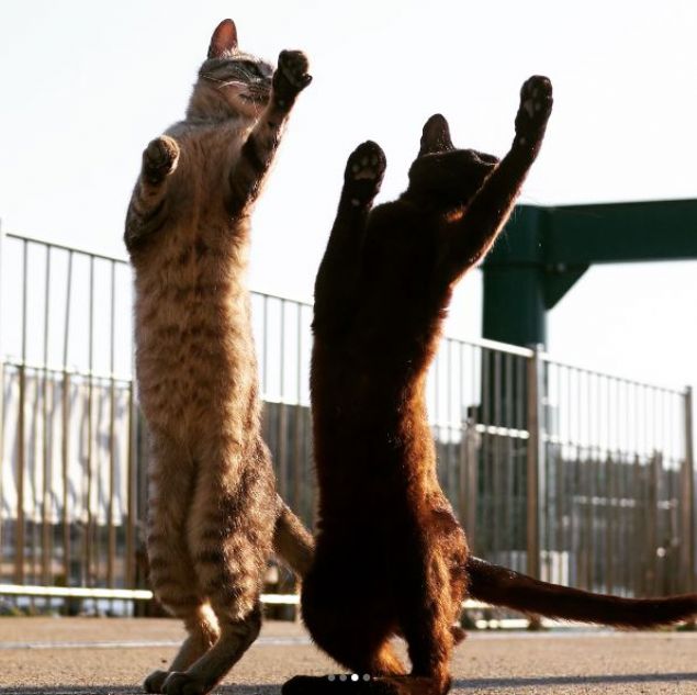Her bir karesi sanki Japon dövüş sanatları ustaları gibi poz veriyor. Kedilerin korunma refleksi ortaya inanılmaz görüntüler çıkardı.