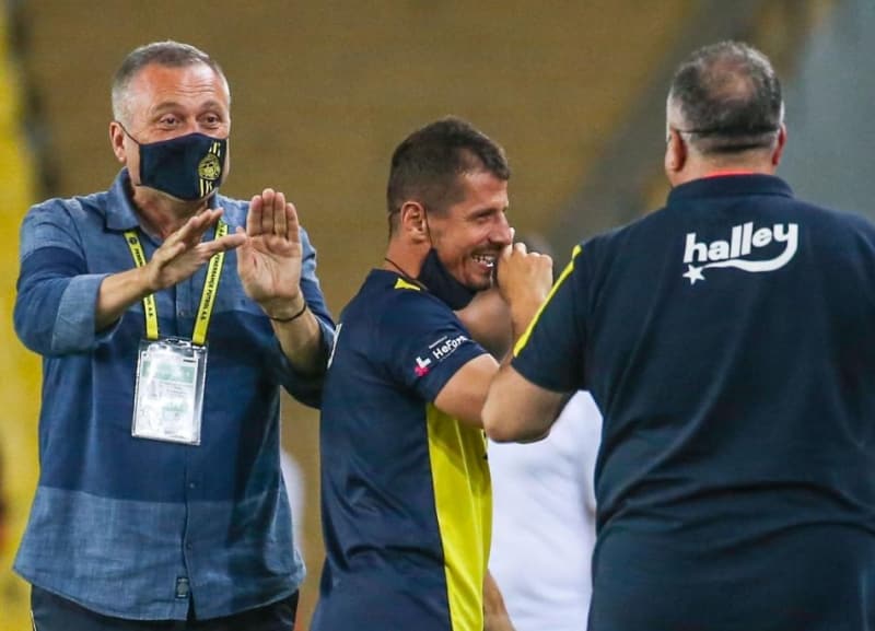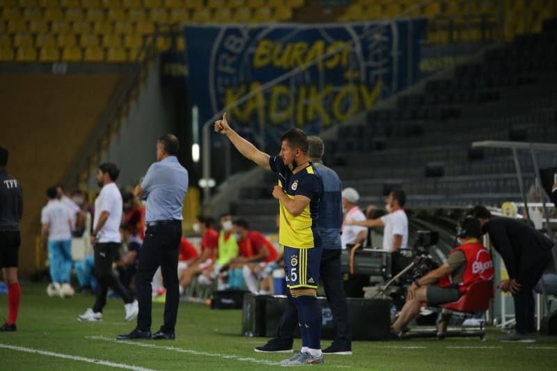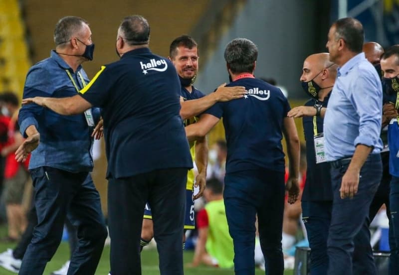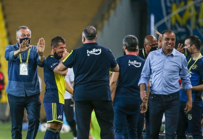 Emre Belözoğlu ilk yarı bitiminde Ferdi'yi tebrik etti.