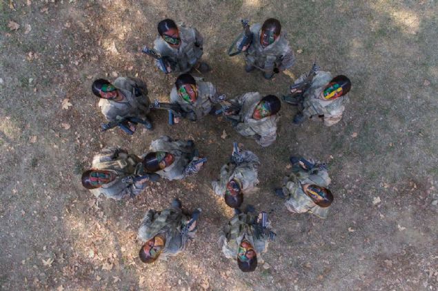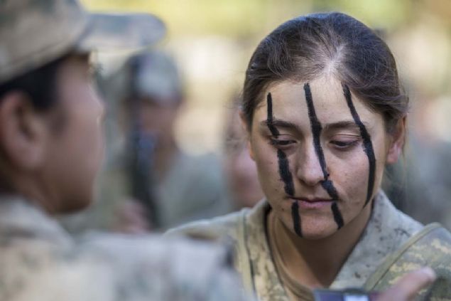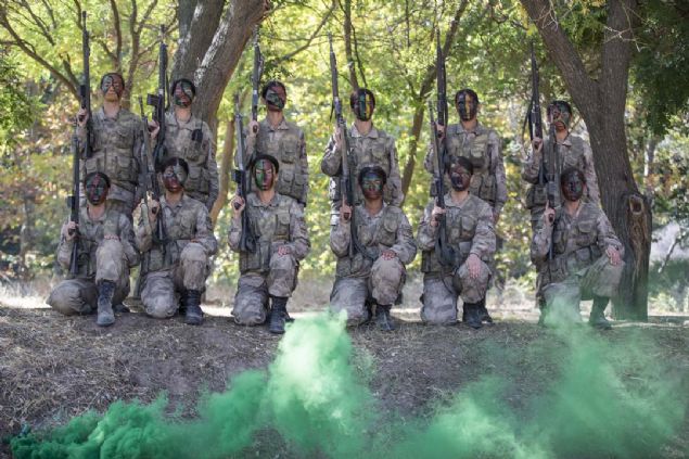Astsubay adayları, bazı eğitimler öncesinde komutanları tarafından adeta süslenir gibi yüzleri boyanarak arazideki operasyonlarda kamuflaj tekniklerini de öğreniyor.