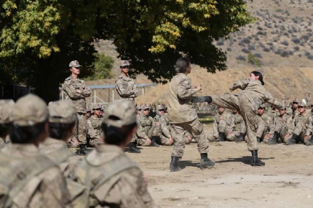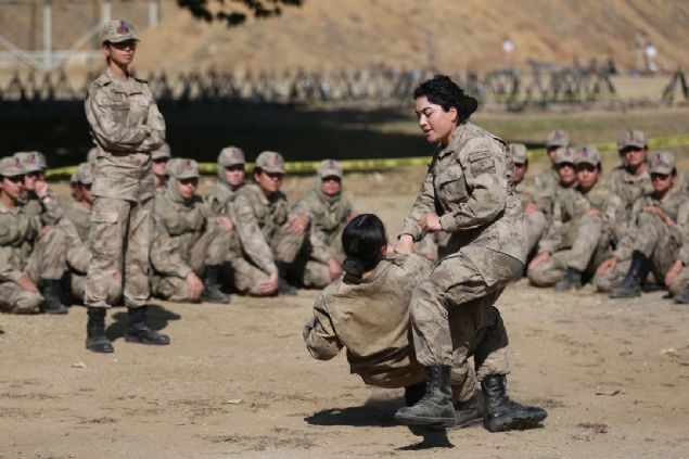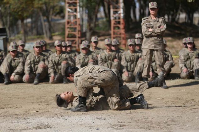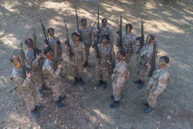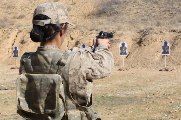 Gece gündüz fark etmeden her türlü arazi şartlarına uyum sağlayabilecek şekilde eğitilen kadın astsubay adayları, tabanca ve uzun namlulu silahlarla atış, yakın dövüş teknikleri, intikal ve tatbikat gibi zorlu bir eğitim sürecinden geçiyor.
