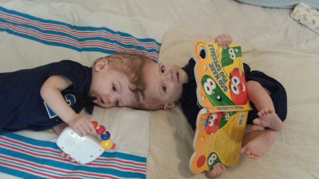 14 aylık Jadon ve Anias isimli iki çocuk doğduklarında kafaları birbirine bağlıydı.