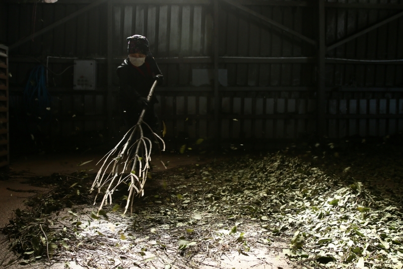 Doğal yetişme alanlarından kesilen yaş yapraklı defne sürgünü, Kefken'de yer alan tesislerde kurutuluyor. Daha sonra dalından ayrıştırılan defne yaprakları işlenmek üzere İzmir'e gönderiliyor.