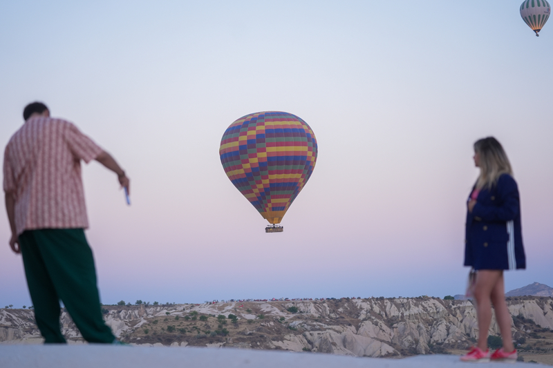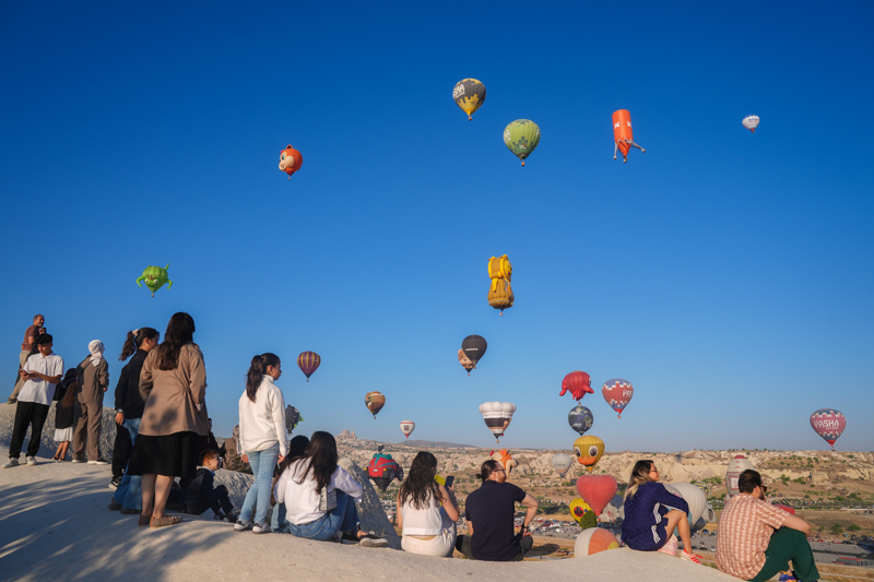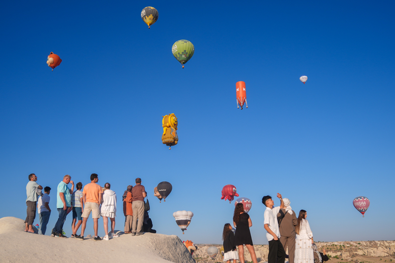 Renkli görüntülerin ortaya çıktığı alanda yerli ve yabancı turistler, etkinliğe katılan balonların görsel şölenini izledi.