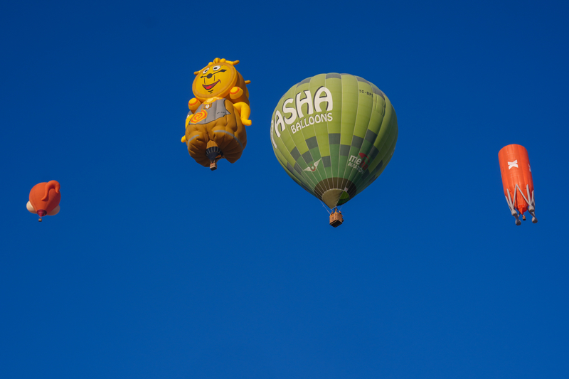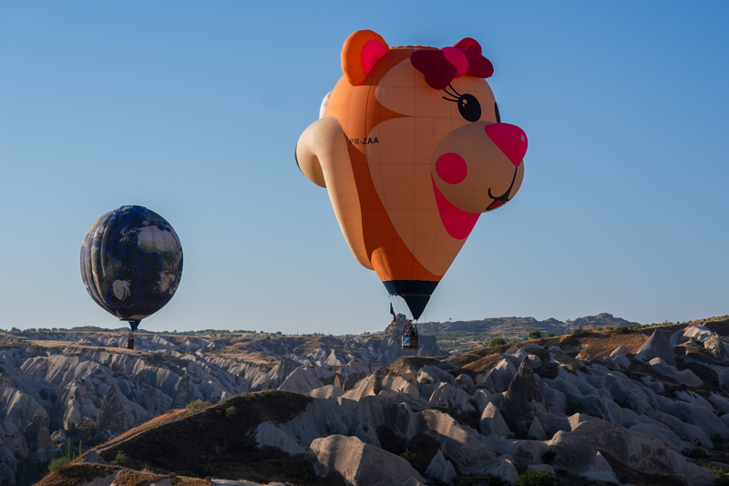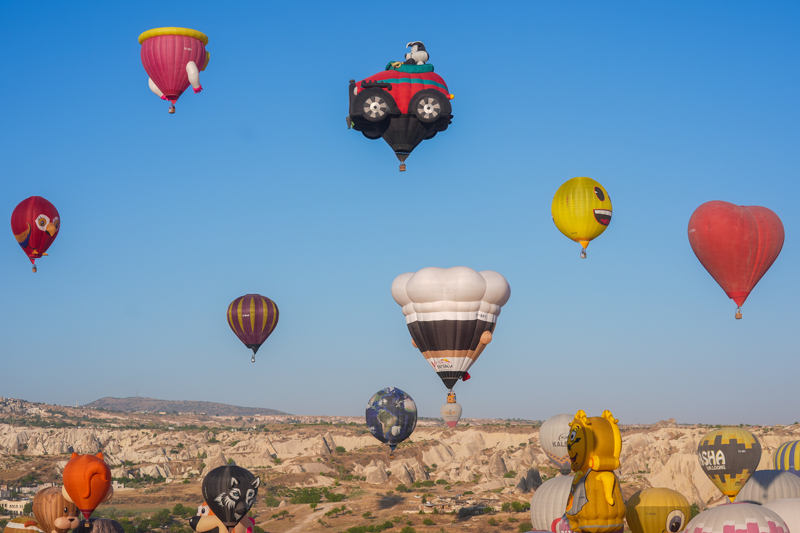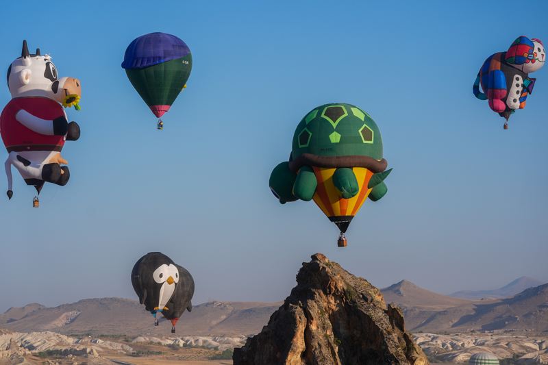 Türkiye'nin yanı sıra 27 ülkeden gelen, 'papağan', 'inek', 'otomobil', 'kurbağa', 'roket', 'kalp' ve 'kurt' gibi 40 figürlü balon, Göreme beldesinden kalkış yaptıktan sonra vadilerin üzerinde yaklaşık 30 dakika boyunca uçtu.