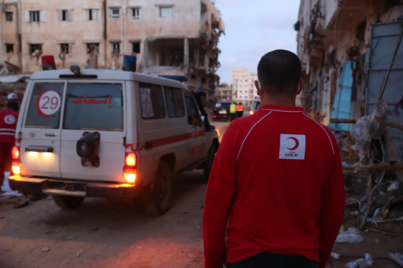 Türk Kızılay, sel felaketinin yaşandığı Libya'ya 150 tonu aşkın insani yardım malzemesi gönderdi.