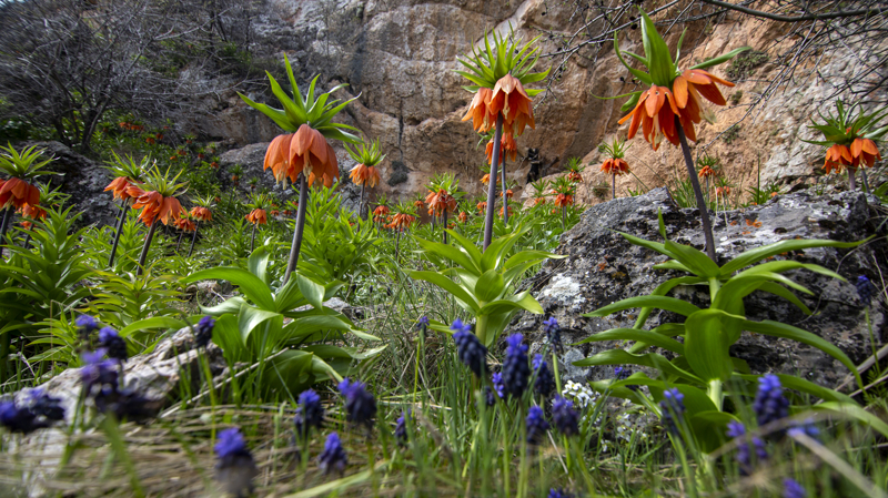 Ülkemizin bazı bölgelerinde yetişen endemik bir tür olan ve koparılması yasak olan yöresel adıyla 'ağlayan gelin' olarak bilinen ters laleler, Malatya'nın Yeşilyurt ilçesindeki dağlarda açmaya başladı.