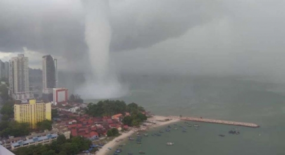 Malezya'nın Penang Adası'ndaki George Town şehrinin Tenjung Tokong bölgesini vuran fırtına şehre böyle geldi.