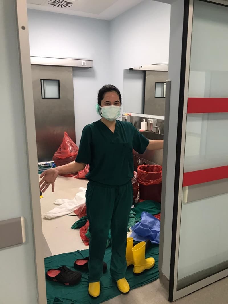 “Ailemle aynı evin içinde ayrı düştük bu salın yüzünden. Çünkü ben ameliyathaneden ve hastaneden çıktıktan sonra, temizlik dezenfeksiyon işlemlerimi tamamlayıp eve gidiyordum ama direkt odama geçip evdekilerle tüm irtibatımı kesiyordum onları koruyabilmek için. En az bir saat eve girdikten sonra temizlenmekle uğraşıyordum. Saatlerce banyodan çıkmadığım zamanlar oluyordu endişe yüzünden. Virüsü biraz daha tanıdıktan sonra, biraz rahatladık. Annem yemeğimi hazırlayıp odama veriyordu; ben tabaklarımı çamaşır suyuna atıp o şekilde anneme teslim ediyordum. Böyle bir sürecin içindeyiz. Normal zamanda burası çok yoğun çalışan bir hastane, çok fazla ameliyat vakamız oluyor zaten. O zamanlar yorulduğumuzu sanıyormuşuz ama asıl yorgunluğu bu salgın döneminde gördük.”