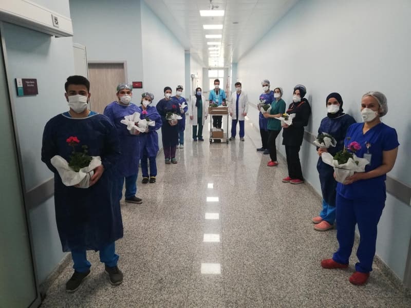 Hastanenin Anestezi Tekniker Sorumlu Hemşiresi olarak görev yapan Ayşe Akdemir ise yaklaşık 600 hemşire, tekniker ve personel olarak bu savaşı gönül vererek sürdürdüklerini anlattı. Akdemir, “Ameliyathanede sadece hastaları değil çalışanları da korumakla yükümlüyüm. Bu 2 aylık süreçte büyük emek verildi. Doktorundan, hemşiresinden, personeline kadar herkes insan üstü bir güçle çalıştı. Bu salgında aslında hastayla en çok temasta bulunan kişiler, hemşire arkadaşlarımız. Çünkü doktor order’larını yazar, yapılması gereken diğer işlerin hepsini yardımcı sağlık personeli tamamlar. Ameliyathane hemşireliği ve teknikerliği ise başlı başına bir zorluk. Işıkların altında kat kat giyinerek saatlerce çalışırsınız. Ama pandemi süresince bir de bunların üzerine koruyucu tulumlar ve birkaç kat daha koruyucu ekipman giyiniyoruz. Üstelik negatif basınçlı odada, daha sıcak bir ortamda çalıştığımız için iç iş yükümüz kat kat arttı. İnsanların yüzüne oturan maskeler, sıcaktan bayılanlar, ameliyathaneden sırılsıklam çıkan arkadaşlarımız oldu. kovid pozitif vakaların ameliaytaları ekstra meşakkatli oluyor; hazırlık ve sonrasında ortamın sterilize edilmesi vs saatler sürüyor. Ameliyathaneye ilk girip en son çıkan ekip, teknikerler, hemşireler ve personeldir. Bu gerçekten büyük bir emek. Ama sevgiyle yaptık ve yapmaya devam edeceğiz” dedi.