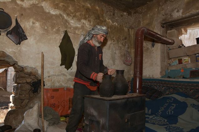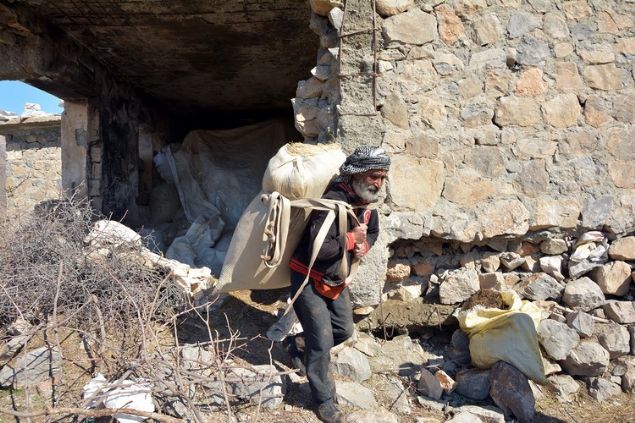 Hepsi kentlere göç etti. Şu anda ben tek varım. Erzağımı at sırtında taşıyarak depoluyorum. Sobamın üzerinde yemek pişiriyorum. Hayvanlarımı besliyorum.