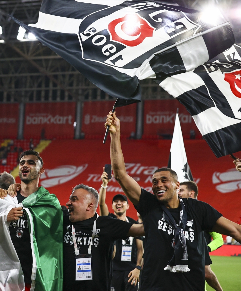Futbolda 59. Ziraat Türkiye Kupası'nı kazanan Beşiktaş, kupasını aldı. Gürsel Aksel Stadı'ndaki müsabakanın ardından büyük sevinç yaşayan Beşiktaşlı futbolcular, üzerinde '2 kupa tek şampiyon Beşiktaş' yazılı tişörtlerle coşkularını kendilerini desteklemeye gelen taraftarlarıyla paylaştı.