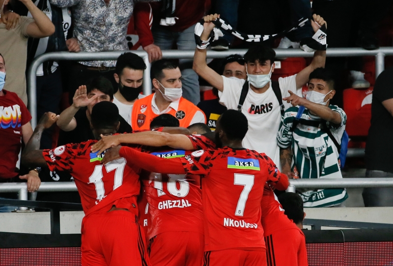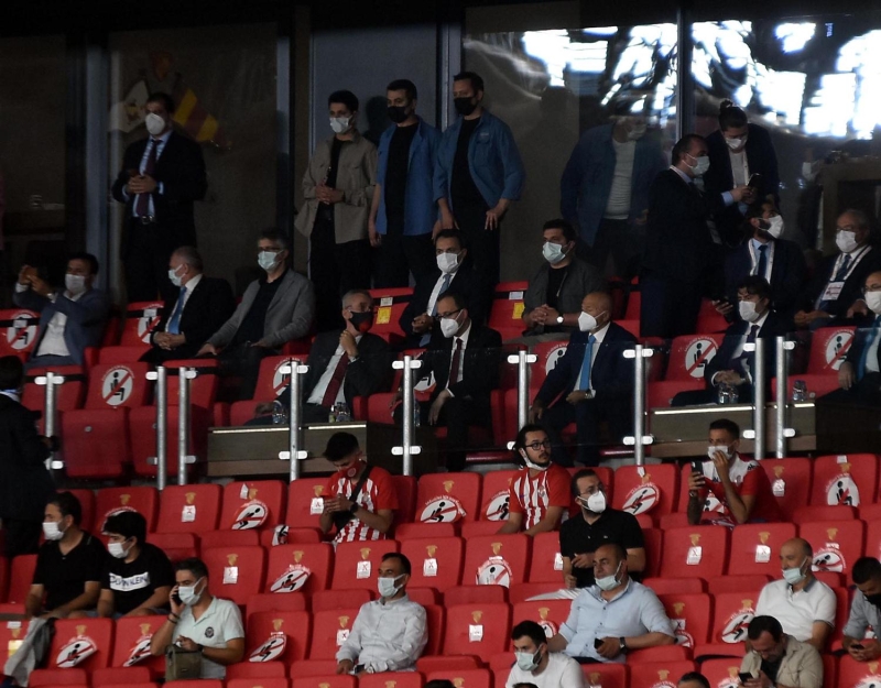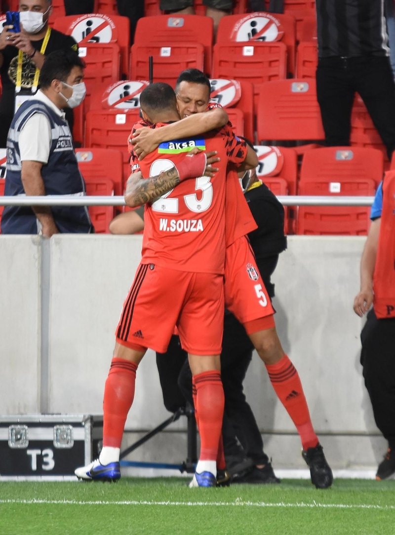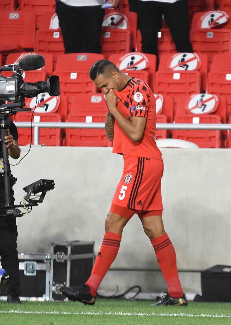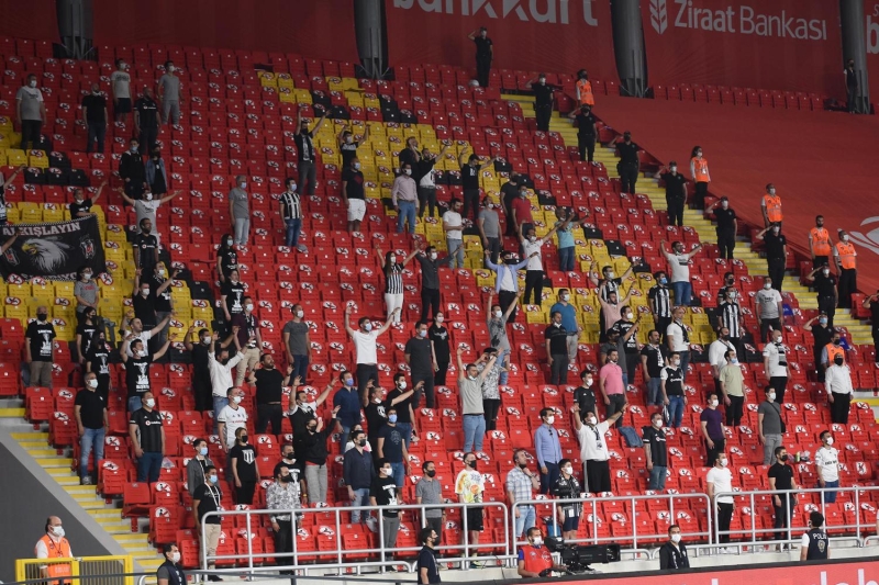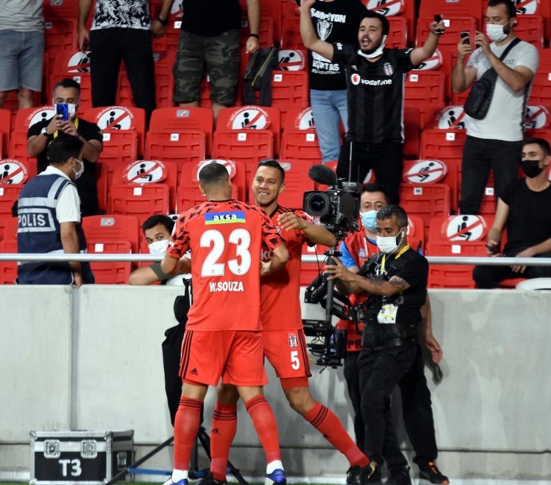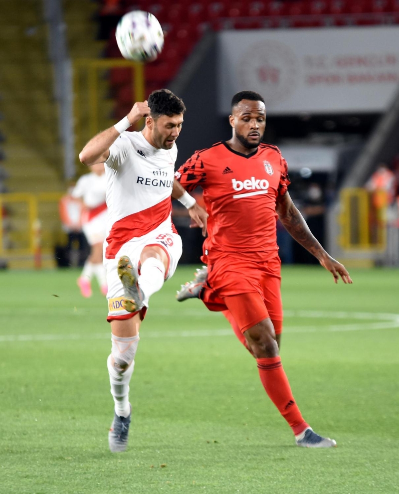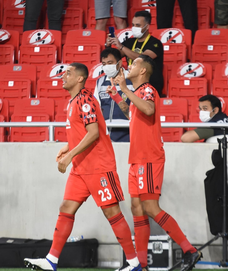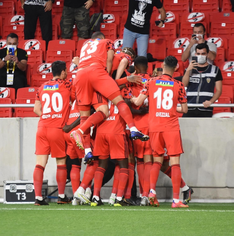 Finalist Antalyasporlu oyuncular ve teknik heyet, koronavirüs tedbirleri kapsamında kürsünün üzerine konulan madalyalarını aldıktan sonra kazanan Beşiktaşlı futbolcuları alkışladı.
