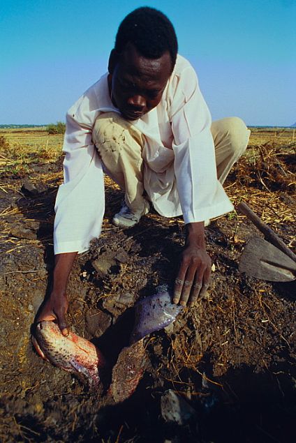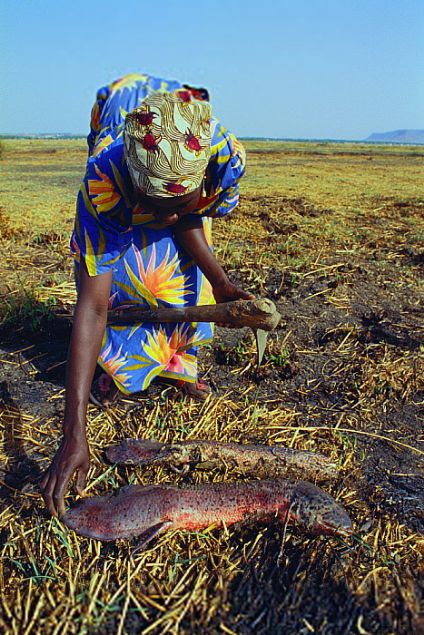 Batı Afrika'da çorak bir arazide toprağın birkaç karış altını kazan kişi, çamurdan bir kesenin içinden canlı balıklar çıkartıyor. Özellikle Kamerun'da yaşayan insanlar geçimlerini sağlamak için çorak toprağı kazıp altından balık çıkartarak geçimini sağlıyor.