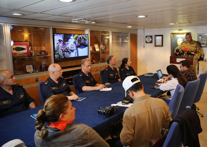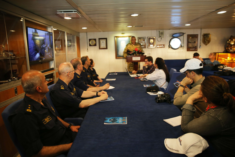 Gemideki brifingde bir konuşma yapan Kurtarma ve Su Altı komutanı Deniz Albay Necati Koray Salar, tatbikatta satha çıkma kabiliyetini yitirmiş denizaltıya yönelik kurtarma harekatı yapılacağını söyledi.