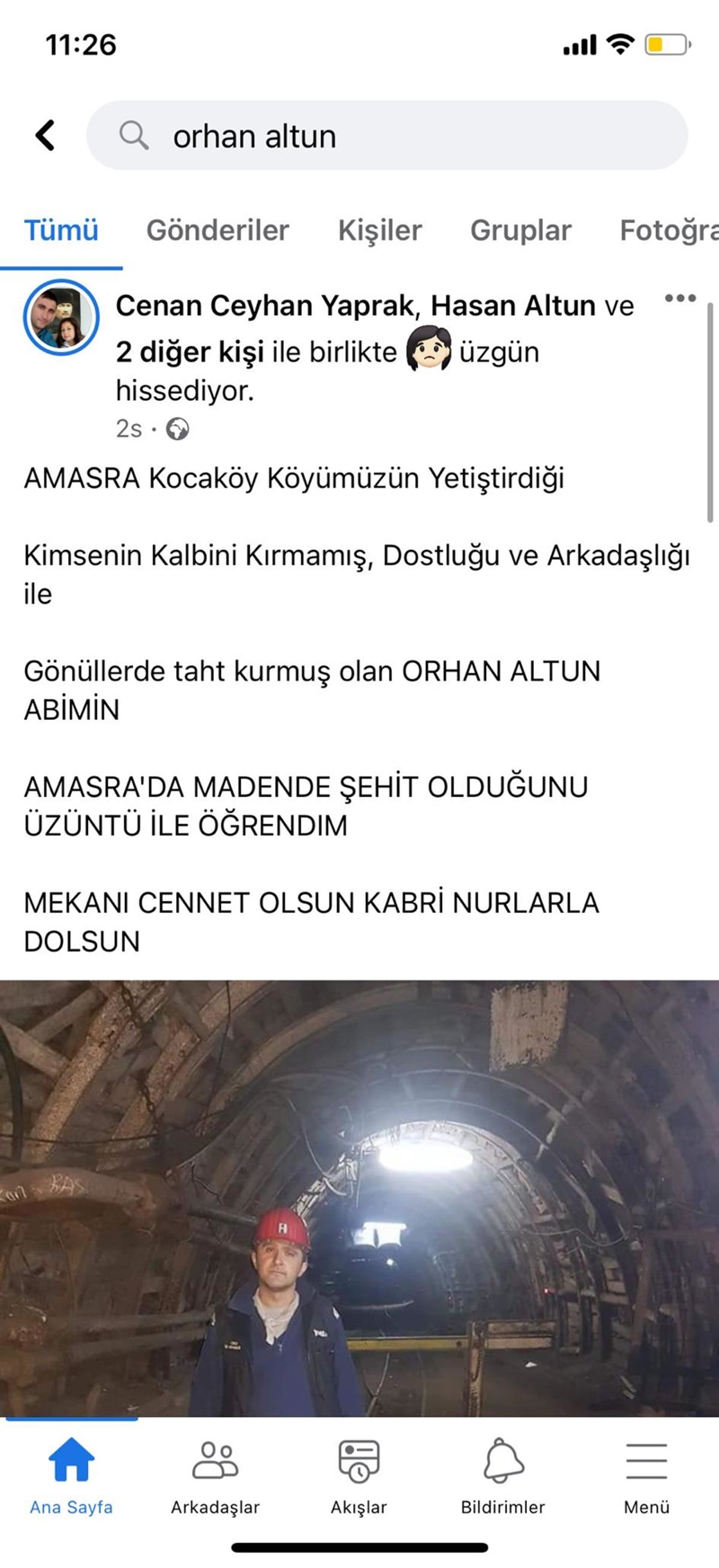 Amasra'nın Kocaköy Köyü'nden Orhan Altun'un arkadaşı ise vefat haberini 'Kimsenin kalbini kırmamış, dostluğu ve arkadaşlığı ile gönüllerde taht kurmuş Orhan Altun abimin Amasya'da madende şehit olduğunu üzüntüyle öğrendim. Mekanı cennet olsun kabri nurlarla dolsun' ifadeleriyle paylaştı.