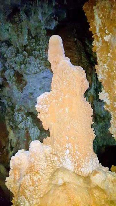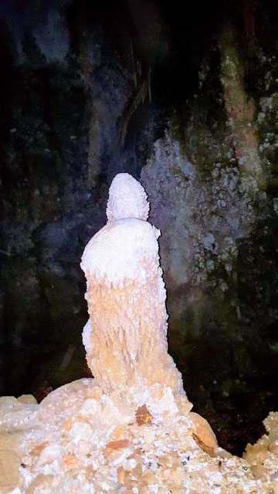 Dağın eteğindeki dik kayalıklardan zorlu tırmanışın ardından ulaşılan mağara, el değmemiş doğallığını korurken, bazı oluşumların insan figürlerini andırması dikkat çekiyor.