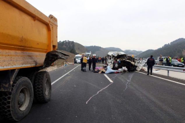 Kahramanmaraş'ta minibüsün kamyona çarpması sonucu ilk belirlemelere göre 8 kişi öldü, 8 kişi yaralandı.
