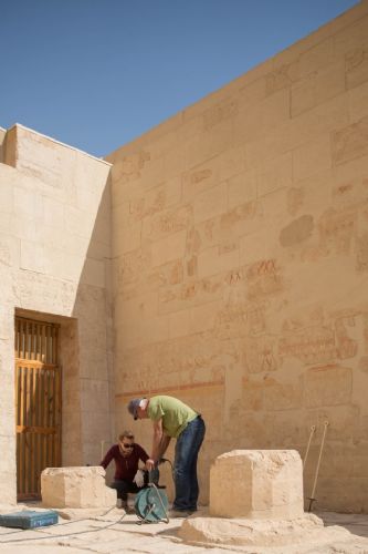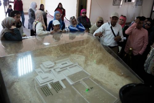 Tapınakta, iktidara geldikten sonra bir kral gibi giyinen ve takma sakal kullanan Hatşepsut'un, sakallı olarak tasvir edilmiş heykelleri bulunduğunu söyleyen Şema, girişte de tapınağın maketi bulunduğunu dile getirdi.
