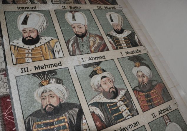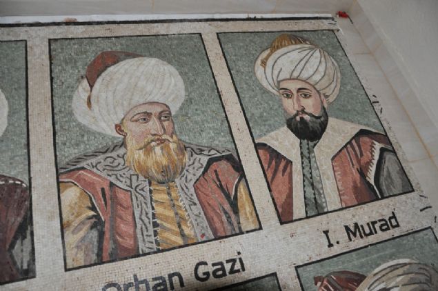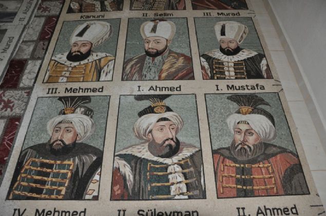 Sattuf’un hazırladığı mozaik eser, 3 ayrı tabloda toplanıyor. İki tabloya 18’er padişahın resimlerini sığdıran Sattuf, üçüncü tabloya ise Osmanlı armasını işledi.