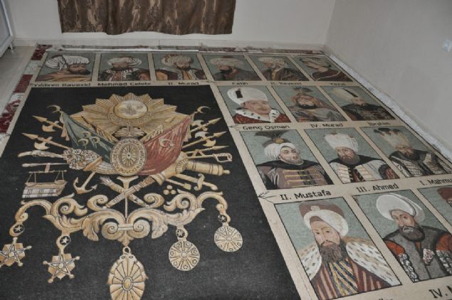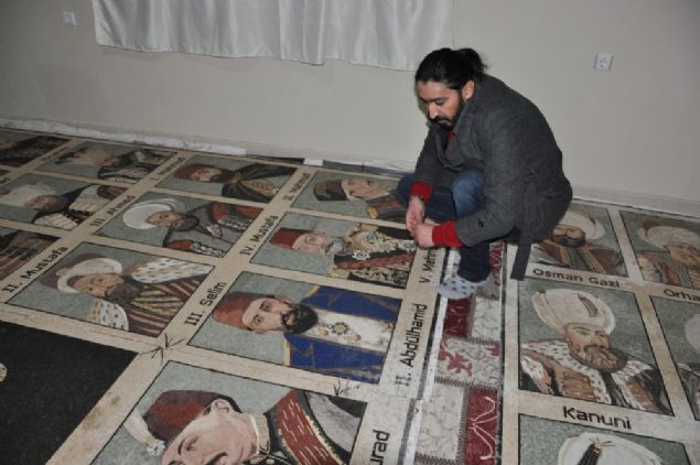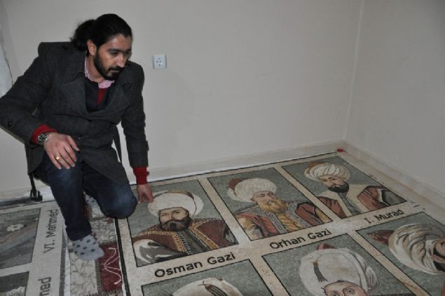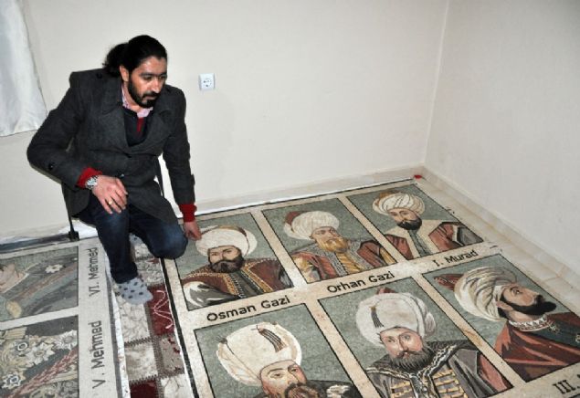 Mozaik taşlarla Osmanlı padişahlarının tablosunu yaptı