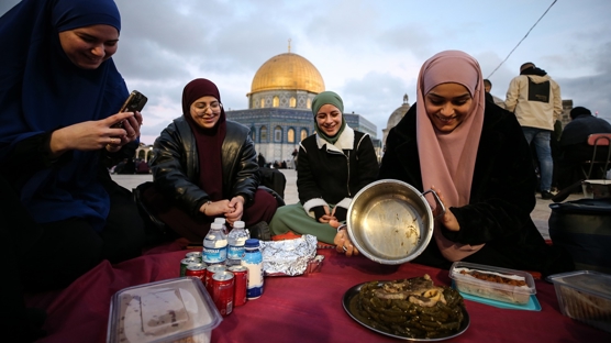 İsrail'in kısıtlamaları karşısında az sayıda Müslüman iftarını Mescid-i Aksa'da açtı.