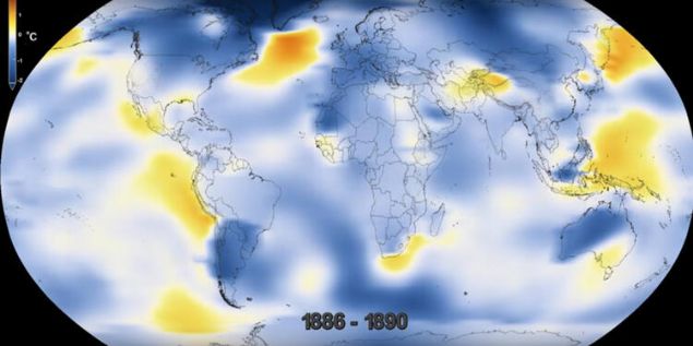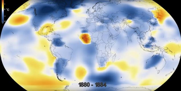Şimdi bu haritaya dikkatlice bakın. Ağırlıklı olarak mavi görünüyor; yıl ise 1880... Ancak aradan her geçen sene sarı lekeler artacak ve hatta kırmızıya dönecek! Peki bu ne anlama geliyor?