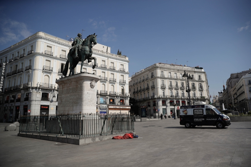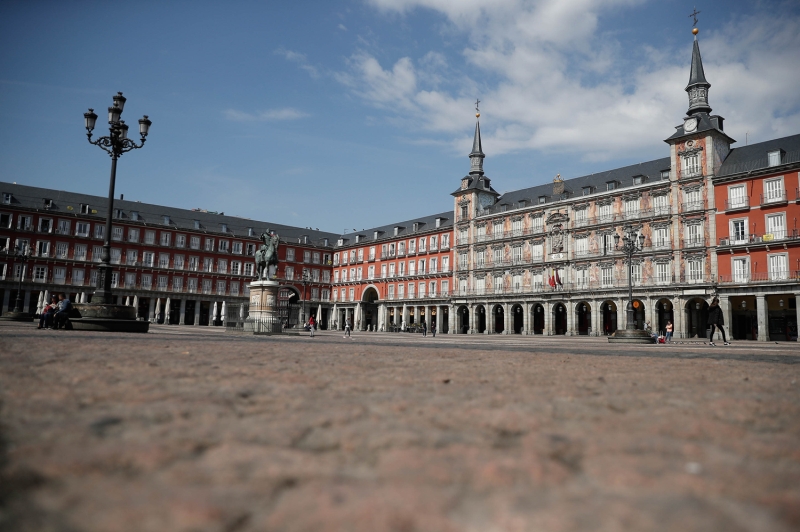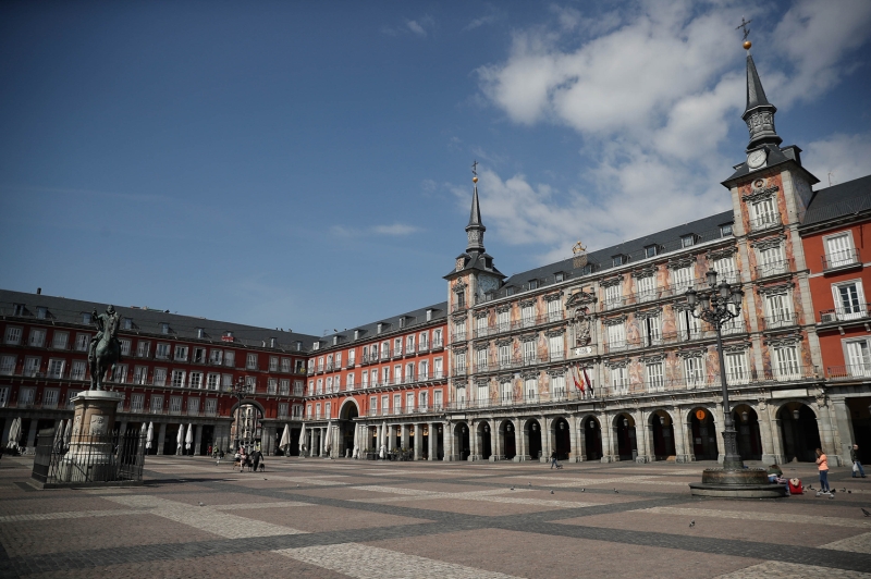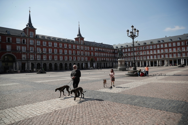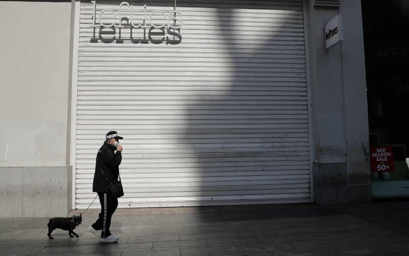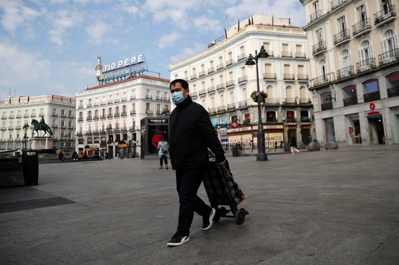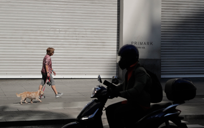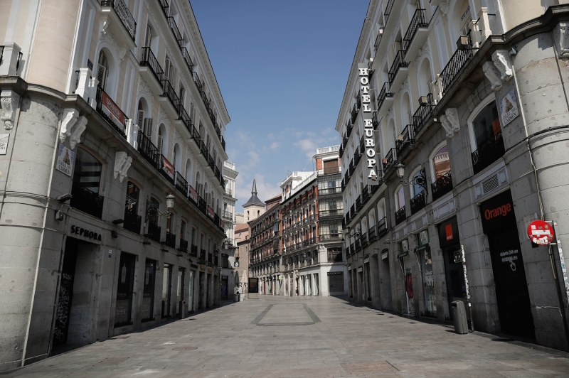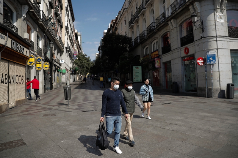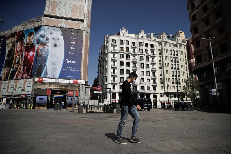 İspanya'da yeni tip koronavirüs (Kovid-19) salgınına karşı 15 gün olağanüstü hal ilan edilmesinin ardından başkent Madrid'deki işyerleri kapatılırken, sokaklarda az sayıda insan görüldü.