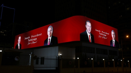 Mirziyoyev'in Türkiye ziyareti kapsamında Cumhurbaşkanlığı İletişim Başkanlığı binasının dijital gösterim ekranından yayımlanan mesajda, Özbekçe 'Sayın Cumhurbaşkanı Türkiye'ye hoşgeldiniz' ifadeleri yer aldı.