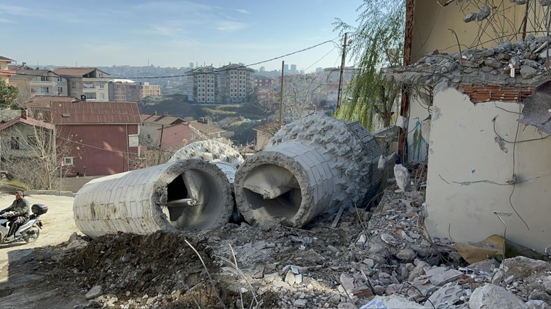 İki günlük çalışma sonucu önce 8 ton ağırlığındaki külah bölümünü ardından da, 25-35 ton ağırlığındaki taş parçalar kesilerek vinçle alındı.