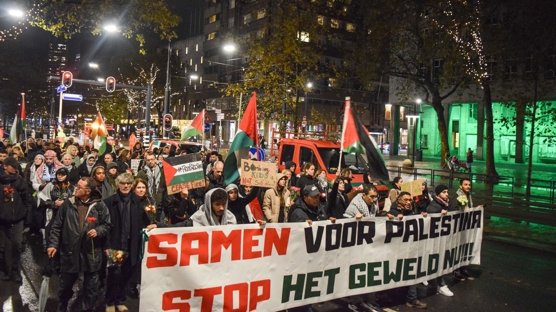 Hollanda'nın Rotterdam kentinde Filistin'e destek gösterisi düzenlendi.