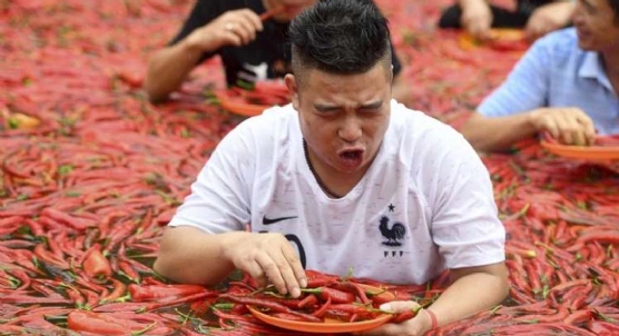 1. Çin'de her yıl düzenlenen acı biber festivalinde, yarışmacılar 3 ton biberle dolu havuzun içerine girerek önlerine konan 50 acı biberi rakiplerinden daha önce bitirmeye çalışıyor.