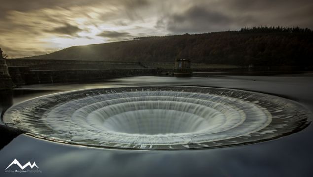 İngiltere'deki Ladybower Rezervuarındaki delik. Delik aslında barajın taşmasını önlemek için yapılmıştır.
