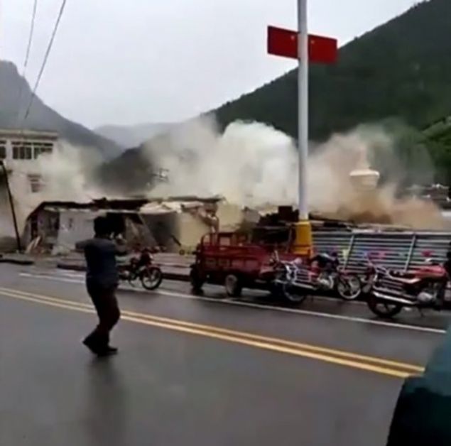 Bir binanın çökme anı ise kameralara böyle yansıdı.